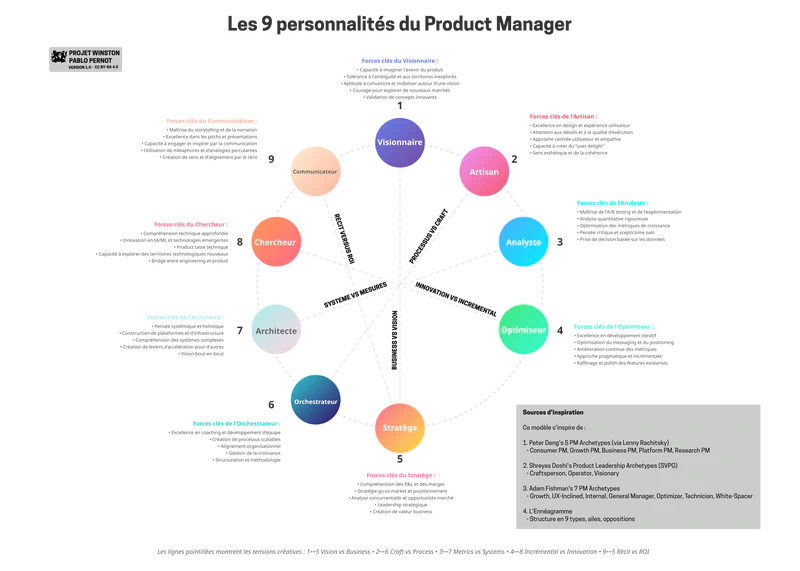 In the context of a training session on Product Management, together with Rachel Dubois, I quickly consolidated a small workshop based on the idea of archetypes. A widespread idea, I drew from two or three articles (see sources), and my amusement and interest in the (somewhat mystical) circle of the Enneagram.
